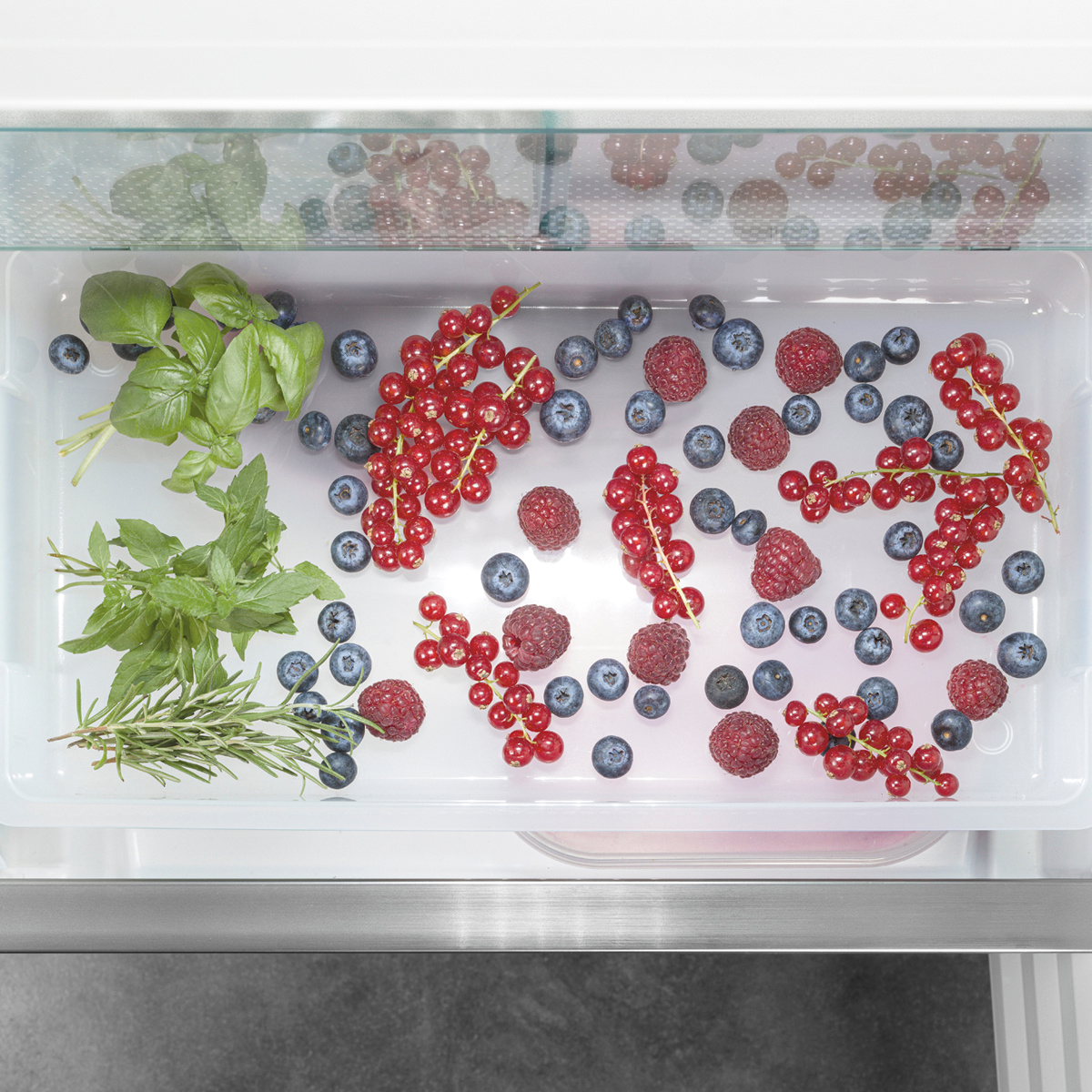 Встроенные направляющие всегда обеспечивают удобный доступ к Вашим продуктам при открытых и загруженных выдвижных контейнерах морозильного отделения. Ограничитель выдвижения предотвращает их выпадение. При задвижении выдвижные контейнеры без усилий перемещаются в оптимальное конечное положение, что обеспечивает правильное распределение воздуха перед выдвижными контейнерами и, следовательно, оптимальное охлаждение.