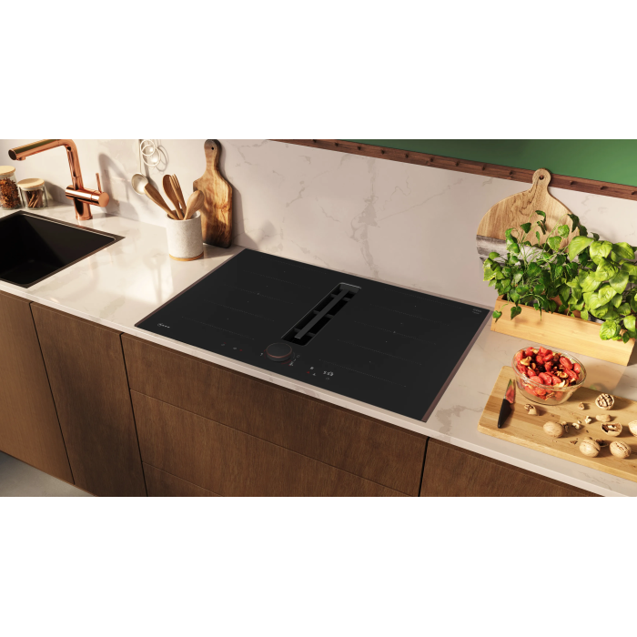 Фронтальное управление / Возможность программирования / Функция поддержания тепла для всех зон нагрева / Функция кухонного будильника / Возможность работы вытяжки в режиме отвода воздуха илициркуляции/ BLDC мотор EfficientDrive /9 ступеней мощности • интенсивный режим/AirQualitySensor – автоматическая регулировка мощности/ Интервальный режим AirFresh/ Автоматическое отключение интенсивного режима/ Режим Остаточный ход/ Металличсекий жироулавливающий фильтр, пригодный для мытьяв посудомоечной машине/ Индикация насыщения металлического жироулавливающего фильтра, мощьность вытяжки 622м3