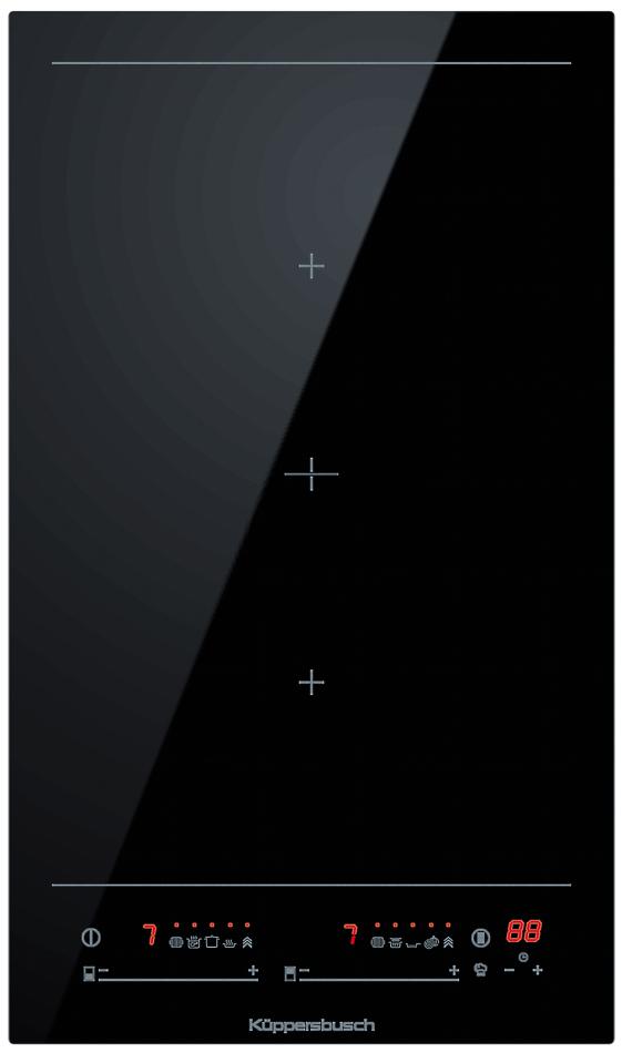 - 2 варочные зоны 255 x 200 мм / 1700 Вт (2000 Вт*)