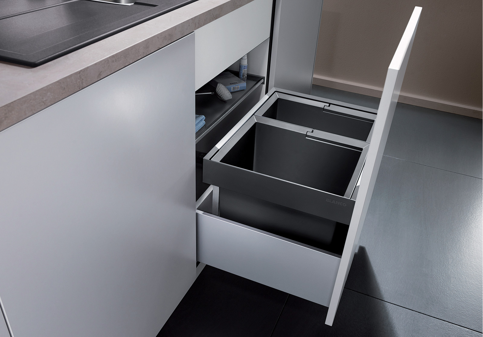 Система сортировки отходов FLEXON II 60/2 от Blanco воплощает философию бескомпромиссного качества, инновационного дизайна и функциональности, превращая самое активное место на кухне в продуманный, эргономичный и эстетичный центр для приготовления пищи.