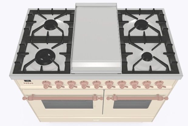 • Тип конфорок: 4 газовые конфорки, Dual конфорка, жарочная поверхность Fry Top