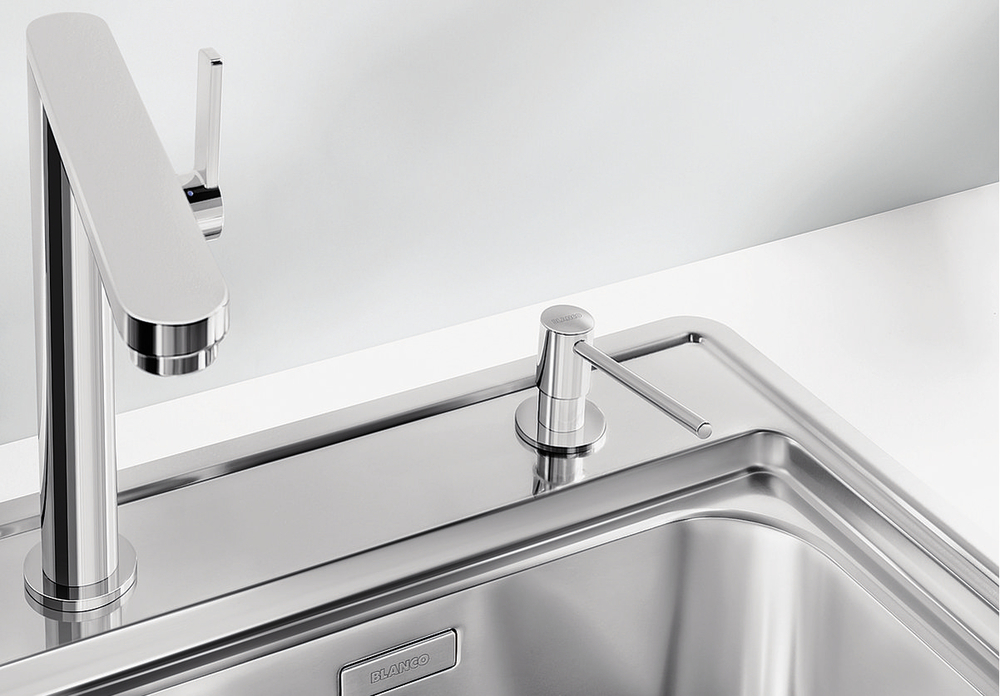 Дозатор TORRE 526700 от Blanco воплощает философию бескомпромиссного качества, инновационного дизайна и функциональности, превращая самое активное место на кухне в продуманный, эргономичный и эстетичный центр для приготовления пищи.