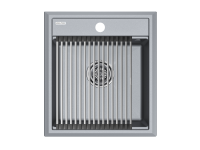 Материал мойки устойчив к сколам, царапинам и деформациям. На горизонтальных гранях чаши мойки предусмотрены специальные выступы-ступеньки, которые позволяют использовать такие аксессуары, как ролл-маты, доски, коландеры и пр. для создания дополнительной рабочей поверхности на кухне.