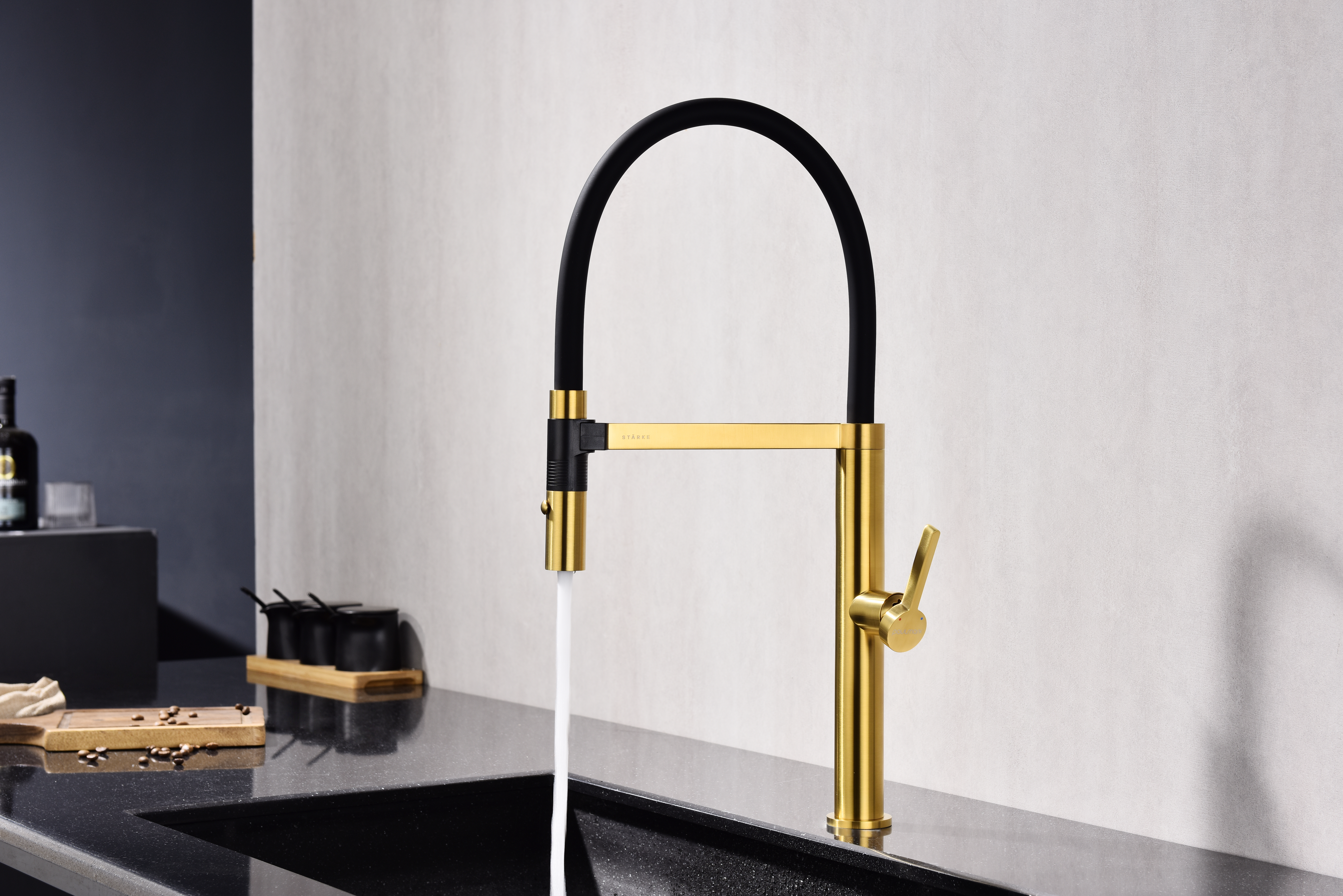 Излив смесителя выполнен из высокопрочного силикона. Конструкцией предусмотрен магнитный механизм фиксации излива.