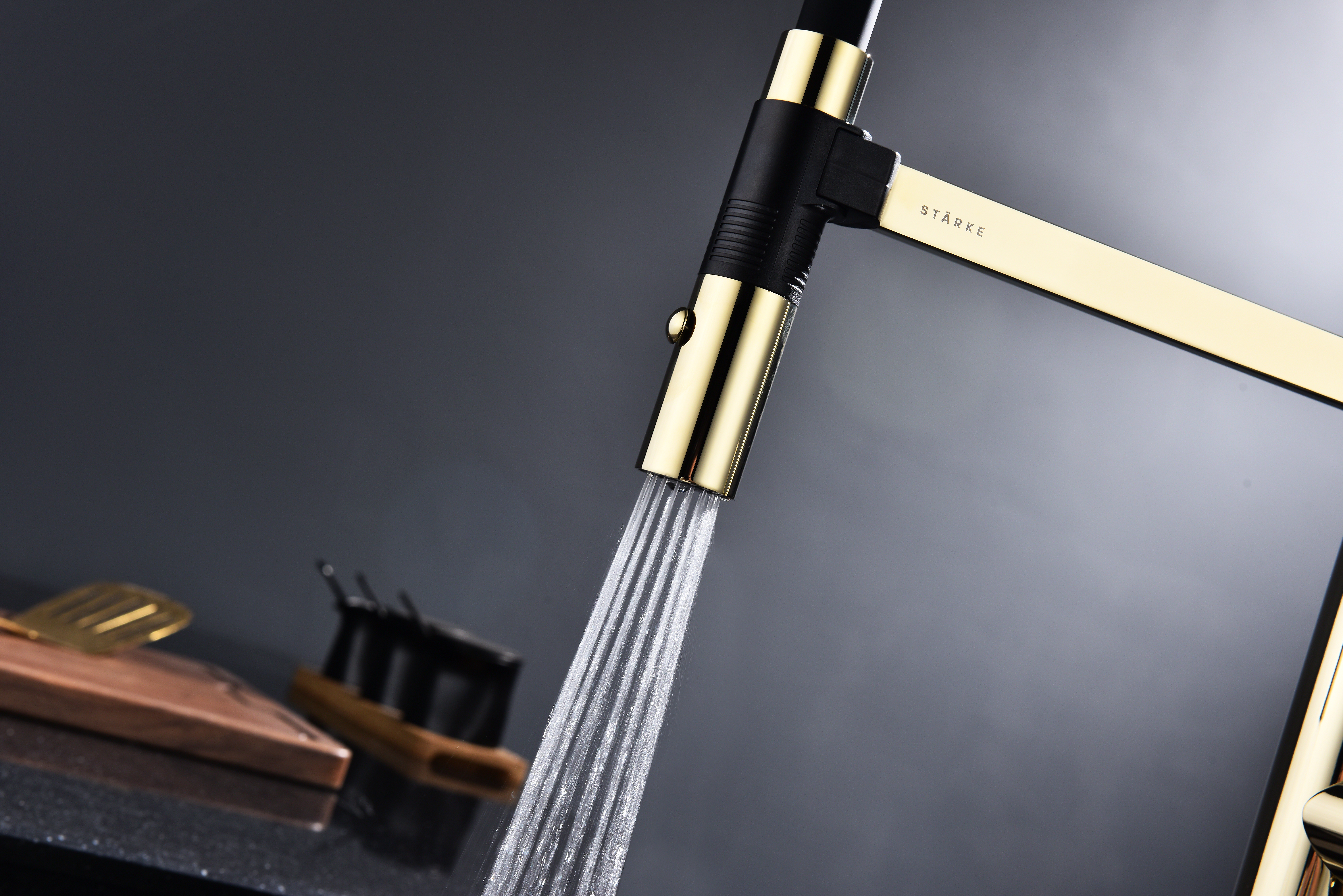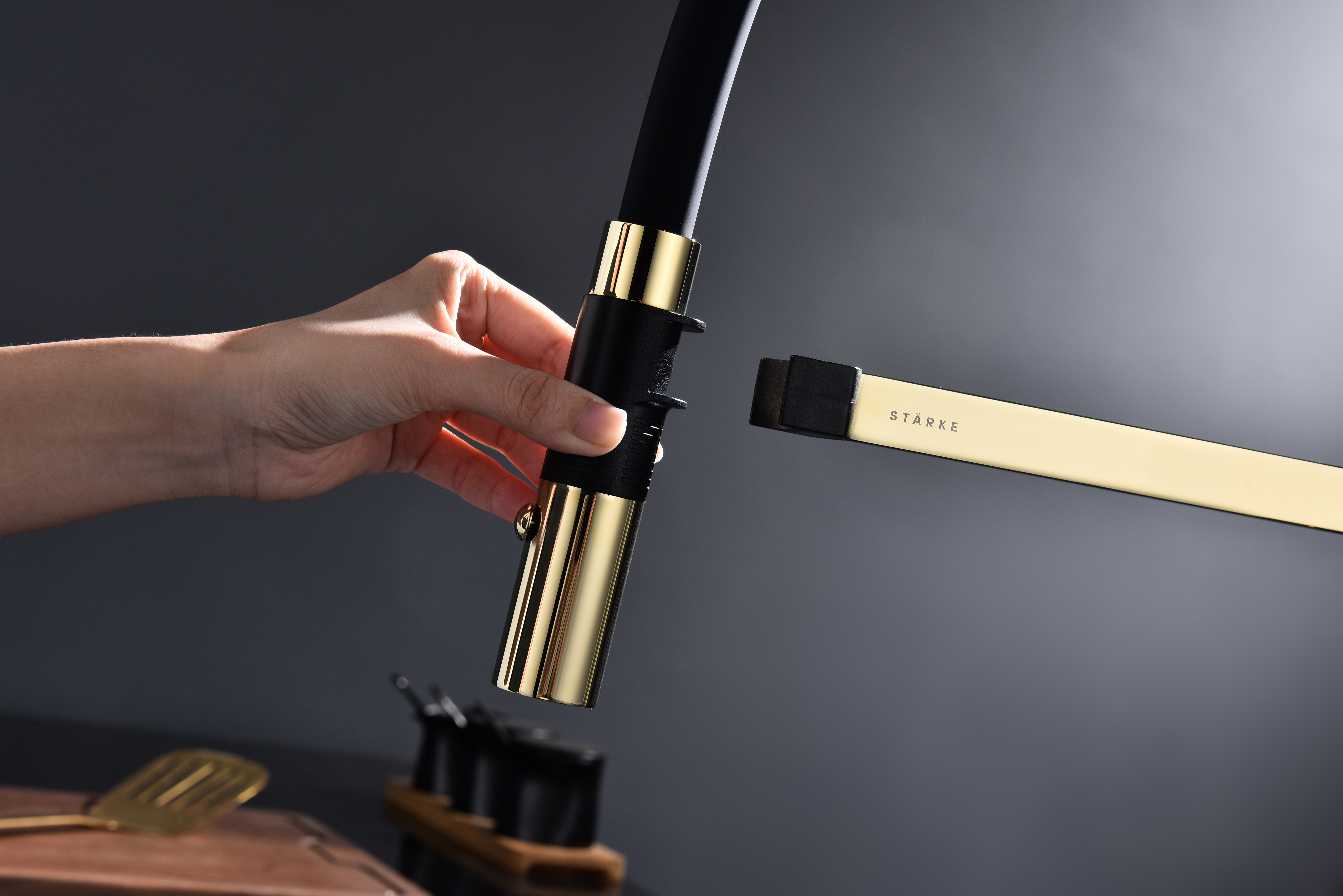 Излив смесителя выполнен из высокопрочного силикона. Конструкцией предусмотрен магнитный механизм фиксации излива.
