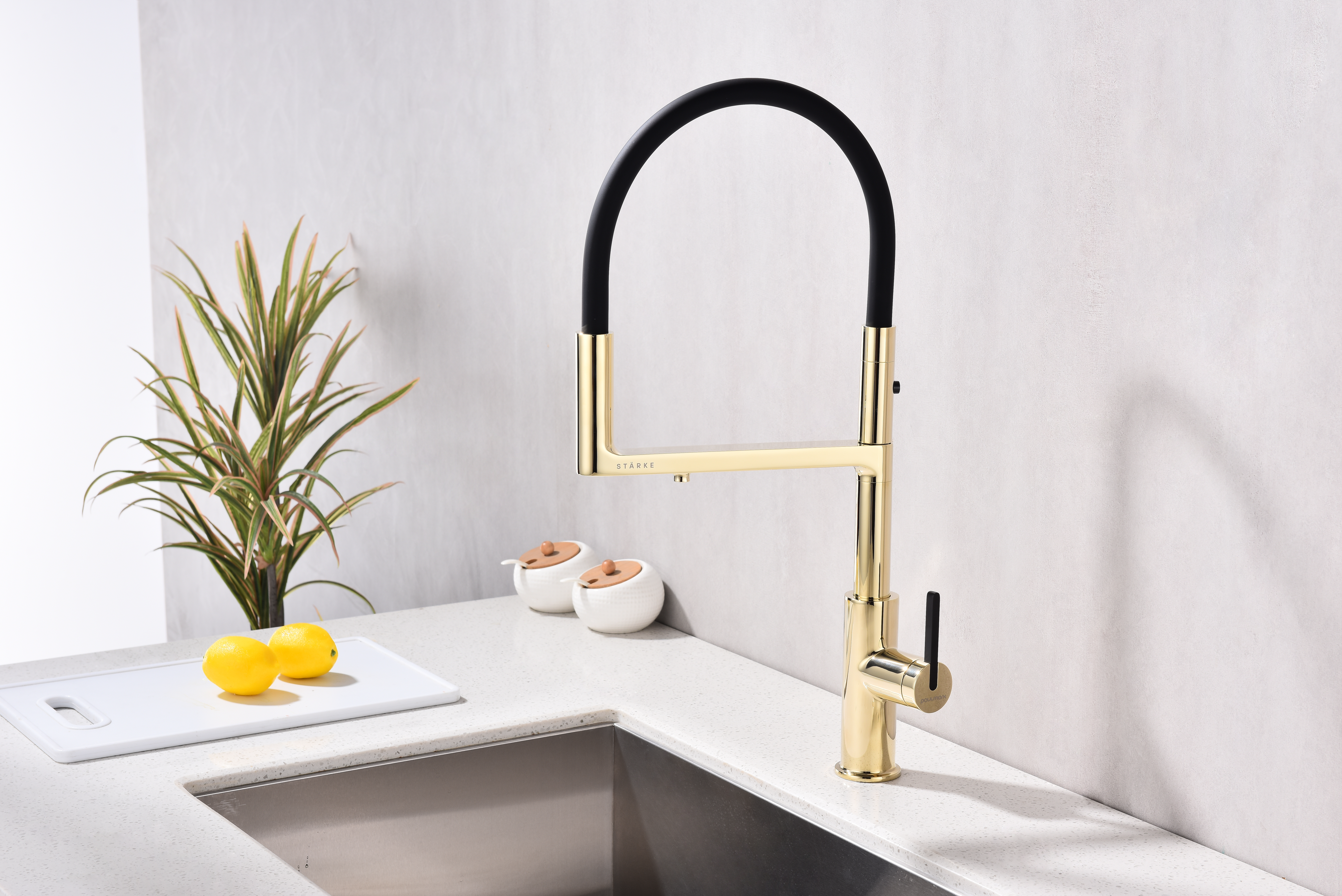Многофункциональный смеситель для кухни TORNADO – модель премиальной серии «Starke» кухонной сантехники бренда Paulmark изготовлен из высококачественной латуни, которая отвечает высочайшим европейским стандартам качества, не содержит свинца, не разрушается со временем и безопасна для здоровья.